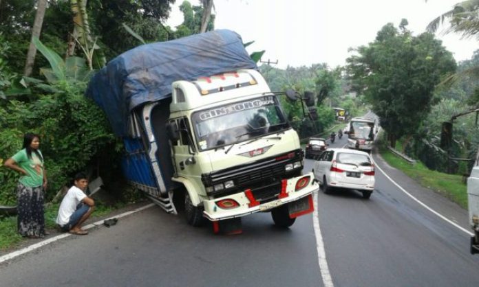 Kejadian ini sendiri, sempat membuat jalur Denpasar-Gilimanuk dari dua arah sedikit tersendat lantaran posisi mobil truk, melintang dan menutupi sebagian badan jalan.