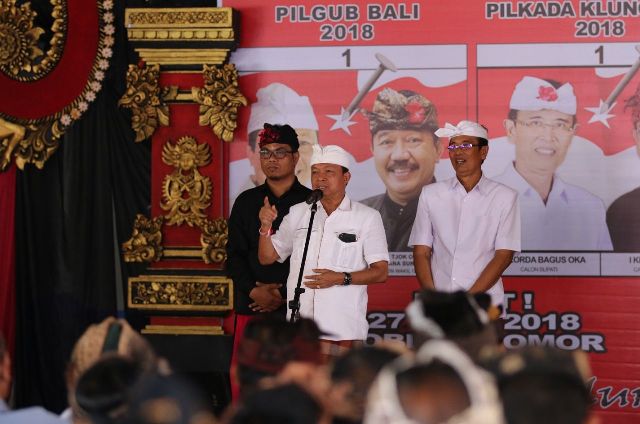 Untuk mempercepat proses pembangunan diperlukan pola satu jalur, satu alur, satu pengelolaan pembangunan di Klungkung. Kalau BAGIA dan Koster-Ace jadi bupati dan gubernur, saya sudah komitmen akan memprioritaskan pembangunan Klungkung,” demikian Koster(mp)