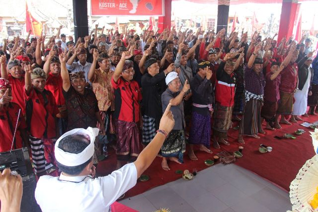 BANGLI, MEDIAPELANGI.com-Dukungan kepada calon Gubernur dan Wakil Gubernur Bali nomor urut 1 (Wayan Koster-Tjok oka Artha Ardhana Sukawati (Koster-Ace) mengalir deras di Kabupaten Bangli. Hari ini, Senin (25/3/2018), sebanyak 32 desa di Kecamatan Kintamani Barat menyatakan kebulatan tekad mendukung, memenangkan dan memilih Koster-Ace pada Pemilihan Gubernur (Pilgub) Bali 27 Juni mendatang.