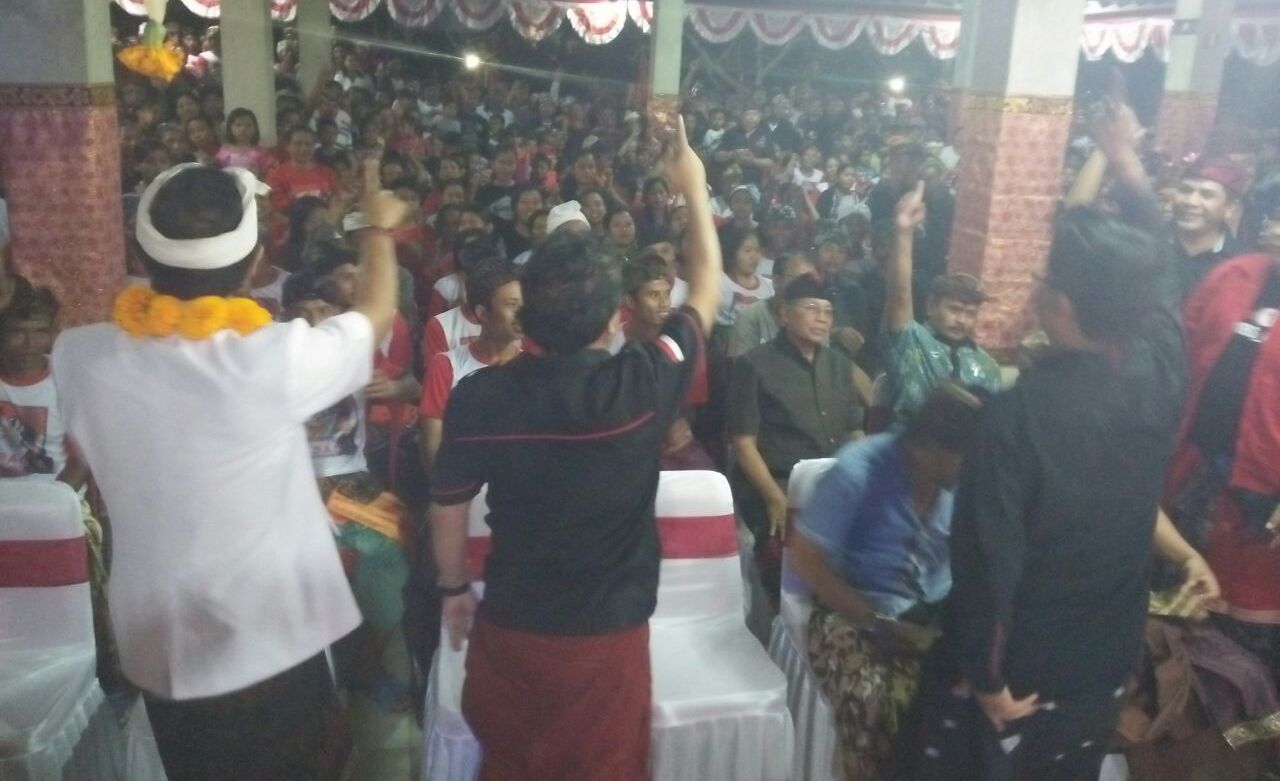 Saban hari ada saja warga yang menyatakan kebulatan tekad mendukung, memeangkan dan memilih Koster-Ace dan BAGIA pada Pilkada serentak 27 Juni 2018. Kali ini giliran ribuan warga Desa Pakraman Nyalian, Kecamatan Banjarangkan yang berkomitmen memenangkan paket satu jalur yang diusung PDI Perjuangan, Hanura, PAN, PKPI, PKB dan PPP itu.