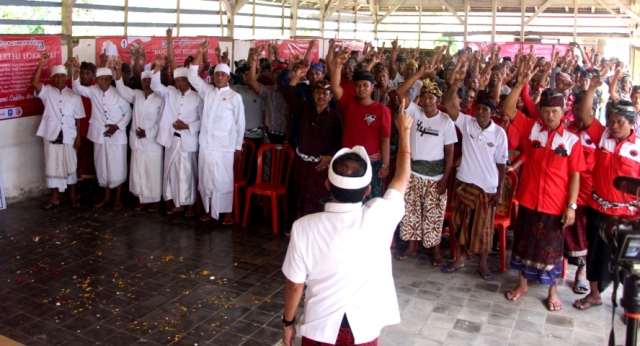 JEMBRANA, MEDIAPELANGI.com – Ratusan warga Desa Pakraman Asah Duren, Kecamatan Pekutatan, Kabupaten Jembrana berkumpul di balai desa. Mereka menyatakan kebulatan tekad mendukung, memenangkan dan memilih pasangan calon Gubernur dan Wakil Gubernur nomor urut 1, Wayan Koster-Tjok Oka Artha Ardhana Sukawati (Koster-Ace). Di hadapan Wayan Koster, warga sepakat memenangkan Koster-Ace dengan perolehan suara maksimal 95 persen.