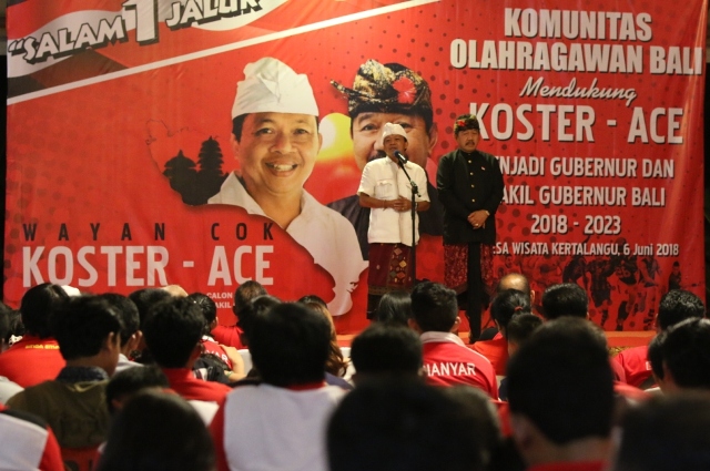 DENPASAR, MEDIAPELANGI.com – Calon Gubernur Bali nomer urut 1 Wayan Koster bukanlah orang yang tak paham dengan dunia olahraga. Koster menegaskan bahwa dirinya merupakan salah satu anggota DPR RI yang ikut memperjuangkan lahirnya Undang-Undang tentang Sistem Olahraga Nasional. “Hampir 15 tahun di Komisi X (DPR RI), jadi saya paham betul soal permasalahan dunia olahraga dari tingkat nasional sampai di daerah.
