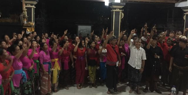 Kini giliran masyarakat adat Desa, Riang Kaja, Desa Riang Gede Kecamatan Penebel, Tabanan, menyatakan kebulatan tekad mendukung, memilih dan memenangkan Paslon yang diusung PDIP, Hanura, PAN, PKB, PPP serta PKPI itu.