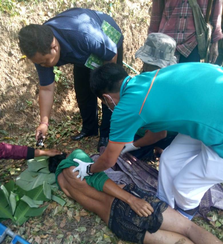 Kemudian bersama sama mendekati korban yang jatuh untuk membantu memberikan pertolongan dan beberapa saat kemudian datang lagi dua orang teman korban guna bersama sama menolong korban dan dipindahkan ketempat yang lebih aman sebelah barat kurang lebih 15 meter dari TKP.