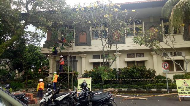 TABANAN, MEDIAPELANGI.com – Gedung kantor Setda Kabupaten Tabanan akhirnya direhab. Pasalnya, gedung yang berusia lebih dari 17 tahun tersebut, banyak bocor dan plafonnya jebol. Dimana proyek perbaikan tersebut dilaksanakan oleh pemenang lelang CV Nitra Sakti dengan nilai Rp1,899 miliar lebih selama 150 hari kalender.