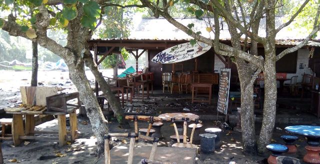 Di Pantai Yeh Gangga, Desa Sudimara, Tabanan diterjang gelombang tinggi membuat kerusakan sejumlah bangunan semua warung termasuk restoran.