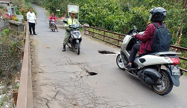 “Kita telah melakukan koordinasi dan sepakat melaporkan kondisi jembatan sekarang ini, karena lubang diatas jembatan itu semakin lama semakin melebar, takutnya jembatan itu jebol sehingga menganggu akses di kedua desa,” tegas Agus Mahardika.