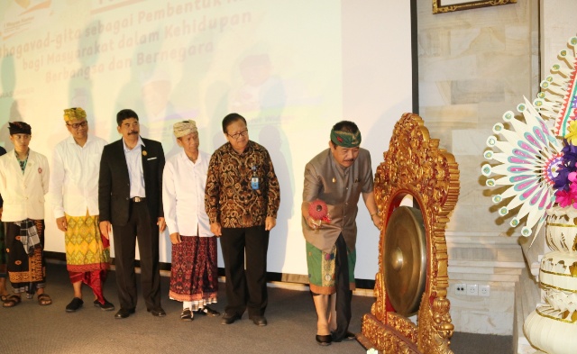 Sementara itu, dalam sambutan Gubernur Bali yang dibacakan oleh Wagub Cok Ace menyambut baik terselenggaranya seminar ini dan berharap akan tumbuh suatu pemahaman bahwa dalam upaya membentuk karakter masyarakat dalam kehidupan berbangsa dan bernegara agar tetap menegakkan nilai-nilai dharma dan nilai-nilai spiritual. Kegiatan ini diharapkan sebagai ajang menempa diri dan membuka wawasan kita dari perspektif Pancamo Weda, mengingat ajaran Bhagavad Gita berdekatan dengan tuntunan hidup dan kelestarian alam semesta.