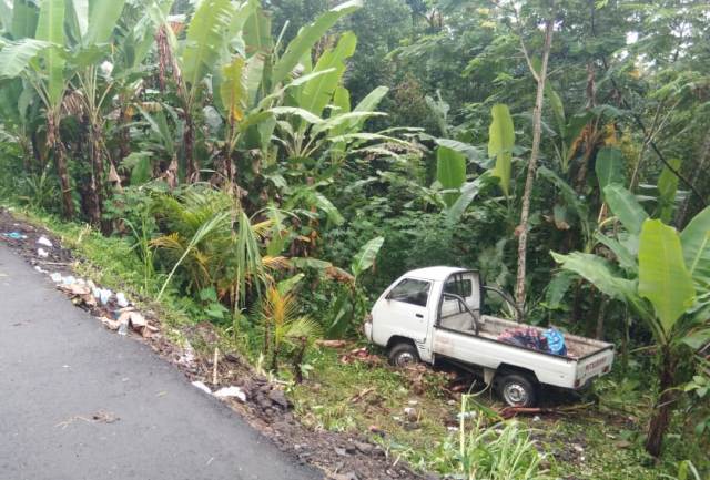 Saat berjalan pulang menuju rumah dengan menaiki mobil pickup berwarna putih. Baru beberapa meter dari lokasi setra banjar.Tiba-tiba ban mobil amblas terperosok ke jurang sedalam 3 meter