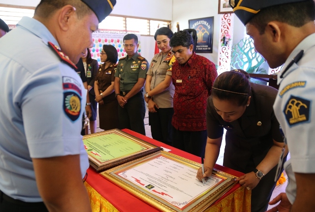 TABANAN, MEDIAPELANGI.com – Kalapas Klas II B dan Pengadilan Agama Tabanan, dicanangkan sebagai Pembangunan Zona Integritas menuju Wilayah Bebas Korupsi (WBK) dan Wilayah Birokrasi Bersih dan Melayani (WBBM), Senin (4/3/2019).