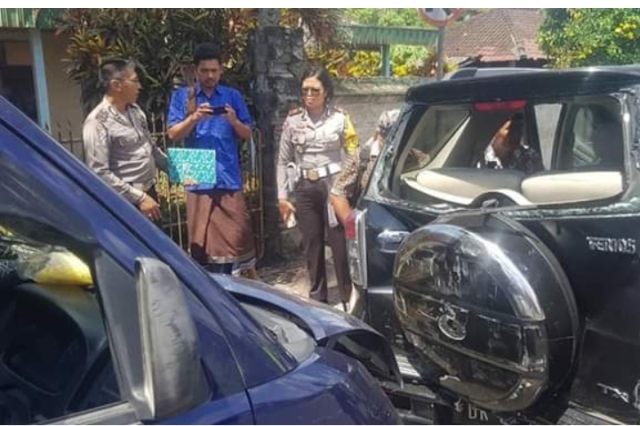 Informasi yang dihimpun mediapelangi.com, kecelakaan beruntun ini melibatkan 3 kendaraan. Diantaranya Daihatsu Pickup nopol P 9102 F yang menabrak Daihatsu Terios nopol DK 1587 GO serta Mitsubhisi Pajero nopol AD 7533 RE yang mengalami ringsek setelah ditabrak.