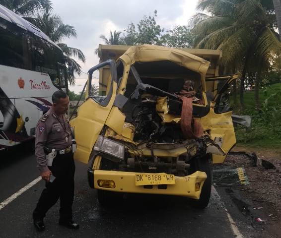 TABANAN, MEDIAPELANGI.com – Tabrakan terjadi antara Truk Fuso bernomor polisi N 9588 UA dengan Truk Colt Diesel nomor polisi DK 8168 WR di jalan umum jurusan Denpasar – Gilimanuk tepatnya di wilayah Banjar Dinas Selabih Tengah, Desa Selabih, Kecamatan Selemadeg Barat, Kabupaten Tabanan, Rabu (31/7/2019) sekitar 04.30 Wita.