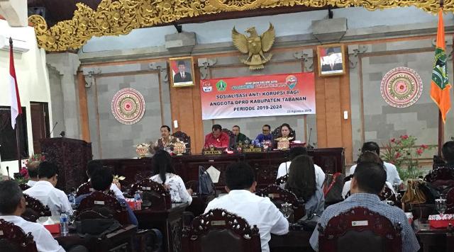 TABANAN, MEDIAPELANGI.com – Maraknya kasus korupsi yang menjerat anggota dewan di seluruh Indonesia yang menimbulkan kerugian Negara. KPK RI memberikan sosialisasi anti korupsi kepada para wakil rakyat melalui roadshow bus KPK “Jelajah Negeri Bangun Antikorupsi”di Gedung DPRD Tabanan, Jumat (23/8/2019).