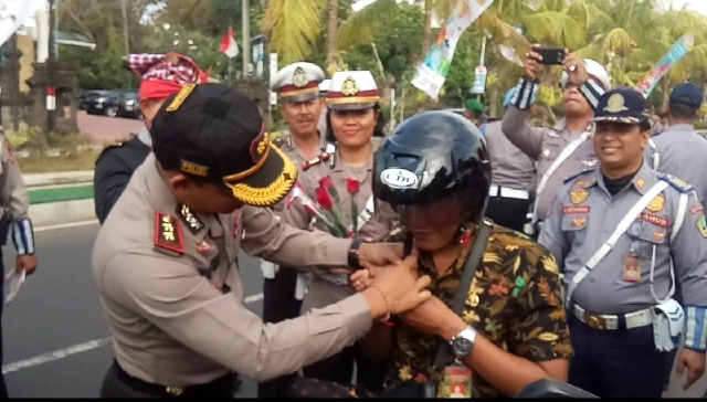 Pada kesempatan tersebut Oparasi Patuh Agung 2019 diawali dengan menggelar operasi Gabungan di Jalan Pahlawan depan Mapolres Tabanan, dengan membagikan Helm SNI kepada pengendara yang saat operasi ditemukan berpakaian adat. (ka)