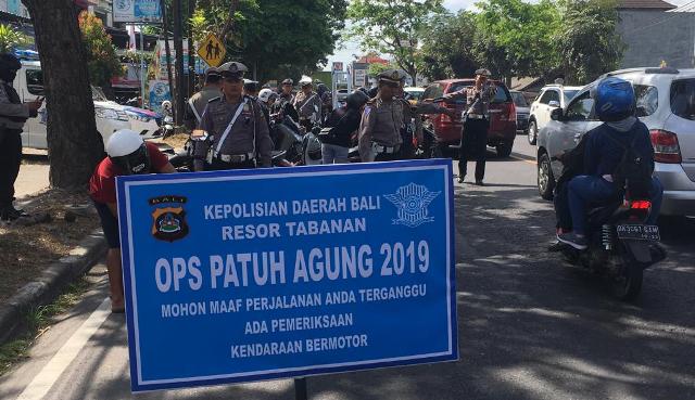 Dihari pertama Operasi Patuh Agung 2019 dilaksanakan, Satuan Lantas Polres Tabanan berhasil menilang sebanyak 101 kendaraan yang melanggar aturan lalu lintas.