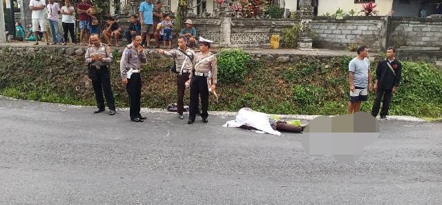 Tak pelak, pengendara sepeda motor jatuh di badan jalan lalu tergilas ban belakang truk kiri, sedangkan sepeda motor jatuh ke got. I Kadek Bayu Prastya sendiri mengalami luka cukup parah. Ia tewas dilokasi kejadian,” ujarnya.