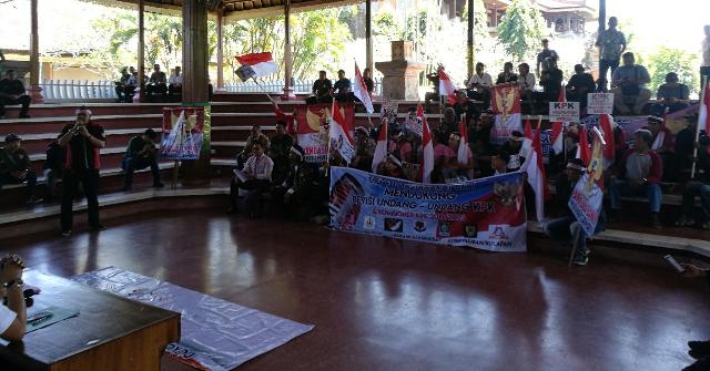 DENPASAR, MEDIAPELANGI.com – Aksi damai mendukung revisi Undang-undang KPK digelar beberapa organisasi kemasyarakatan di Bali yang tergabung dalam Aliansi Bhinneka Sakti (ABS), Senin (23/9/2019).