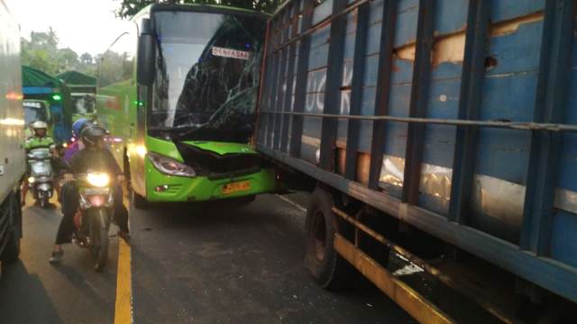 Akibatnya, truk mundur dan menabrak bus Gunung Harta bernopol L 7519 UN,sehingga kecelakaan pun terjadi. Tidak ada korban jiwa maupun luka dalam kejadian tersebut, namun bus yang ditabrak mengalami kerusakan.