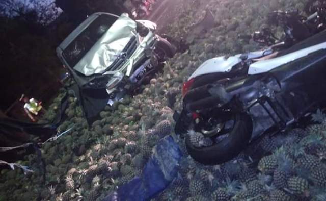 “Setelah terjadi tabrakan kemudian tersebut kendaraan truck oleng ke kanan menyeret sepeda motor Yamaha X Max hingga truk bermuatan nanas terguling menabrak Toyota Avansa.