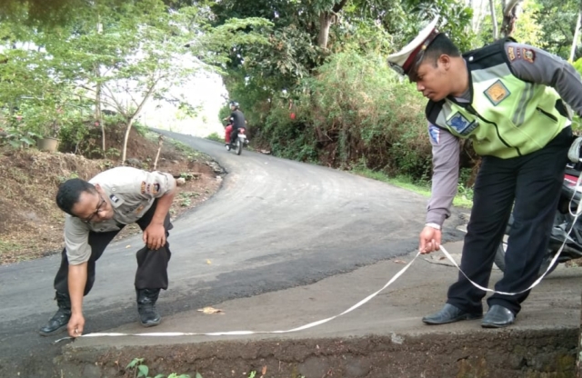 Tiba di tempat kejadian perkara (TKP), dengan kondisi jalan menikung dan menurun, korban kehilangan kendali hingga motor dikendarainya keluar as jalan, sebelum terperosok masuk kedalam pekarangan rumah warga setempat.
