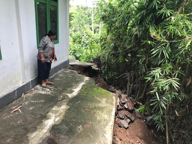 Dari pantauan di lokasi, senderan dan di halaman sekolah tersebut ambrol ke jurang sedalam sekitar 30 meter di bagian utara bangunan.