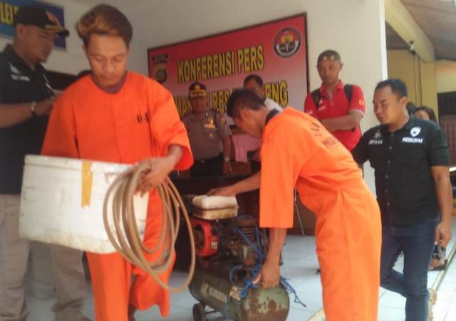 Hasilnya, kecurigaan mengarah pada dua buruh yang bekerja di keramba, yakni Putu Ardana dan Suryadi. Keduanya pun langsung diringkus. Selain meringkus pelaku, Polisi juga menyita sejumlah barang bukti berupa kompresor dan peralatan lain yang digunakan untuk melakukan pencurian.