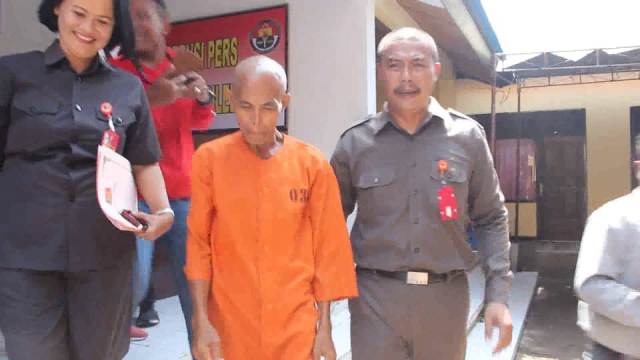 Saat digelandang ke Mapolres Buleleng, seperti tak ada rasa penyeselan dari pelaku Pekak Leong atas perbuatannya.