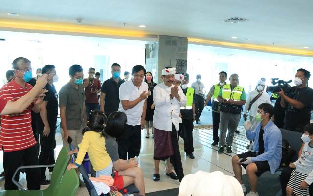 BADUNG, MEDIAPELANGI.com – Wakil Gubernur Bali Tjok Oka Artha Ardhana Sukawati (Cok Ace) meninjau penumpang yang akan bertolak ke China di Terminal Keberangkatan Internasional, Bandara I Gusti Ngurah Rai, Tuban, Badung pada Sabtu (8/2/2020) siang.