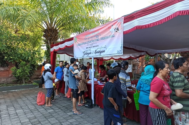 JEMBRANA, MEDIAPELANGI.com – Dinas Koperindag Kabupaten Jembrana menggelar pasar murah menjelang perayaan Hari Suci Galungan dan Kuningan. di halaman Peken Ijogading, Jembrana.