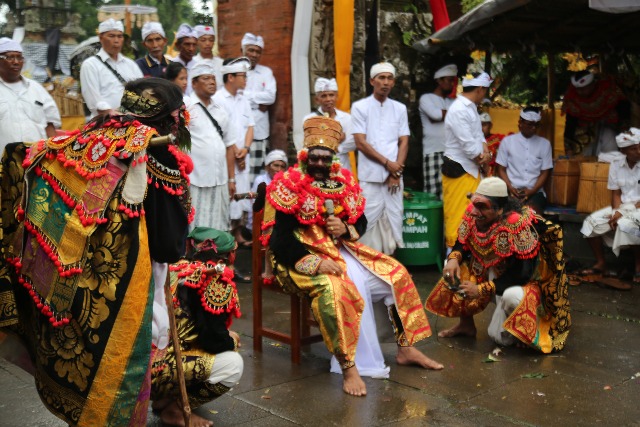 Bahkan Wagub Cok Ace, Wawali Jaya Negara, Putu Eka Putra Nurcahyadi, Prof. Gusti Ngurah Sudiana, Prof. Dibia dan Prof. Bandem serta seniman dari ISI Denpasar, ikut Ngayah Nyolahang Topeng dalam pementasan Tarian Wali yang digelar sebagai kelengkapan serangkaian Karya Agung Pengurip Gumi ini. Nampak para tokoh yang ngayah nyolahang topeng tersebut dengan lugas menari mengiringi lantunan gambelan.