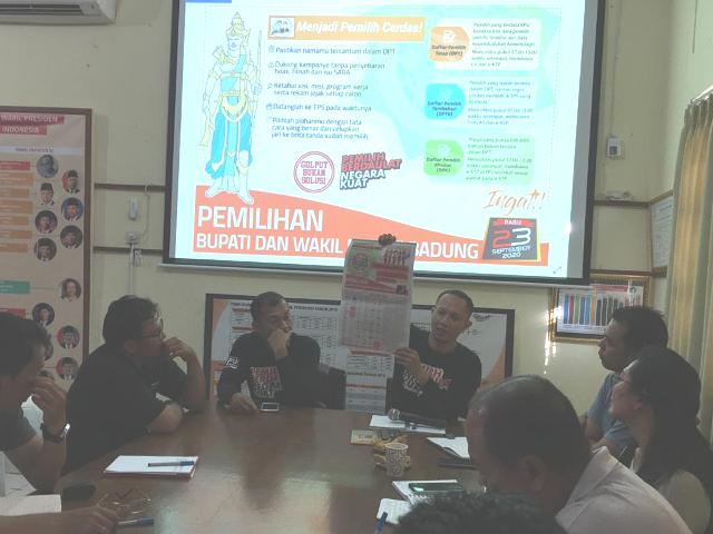Sosialisasi Tahapan Pemilu sudah dilaksanakan oleh KPU Badung dalam berbagai event dan tempat diantaranya buat ibu-ibu di pasar dibagikan tas belanja berisi tanggal pencoblosan dan bahasa ajakan ke TPS. Kegiatan itu juga bertujuan mengurangi penggunaan tas plastik dan diselingi pembagian brosur, kalender yang berisi informasi tahapan pemilu. “Untuk menyasar segmen milenial kami gelar konser di atas truk pada tgl 10 Desember lalu pas peringatan Hari HAM Nasional di sekolah-sekolah kawasan Abiansemal, Petang dan Mengwi. Pada segmen keluarga kami bekerjasama dengan salah satu koperasi dan menyuguhkan hiburan Bondres di pura dengan kontennya tentang Pilkada Badung 2020”, ungkapnya.
