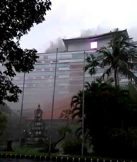 Dari video yang tersebar di media sosial, kebakaran sempat membuat tamu hotel yang dibangun pada tahun 1963 ini tampak panik dan berlarian menuju depan hotel.