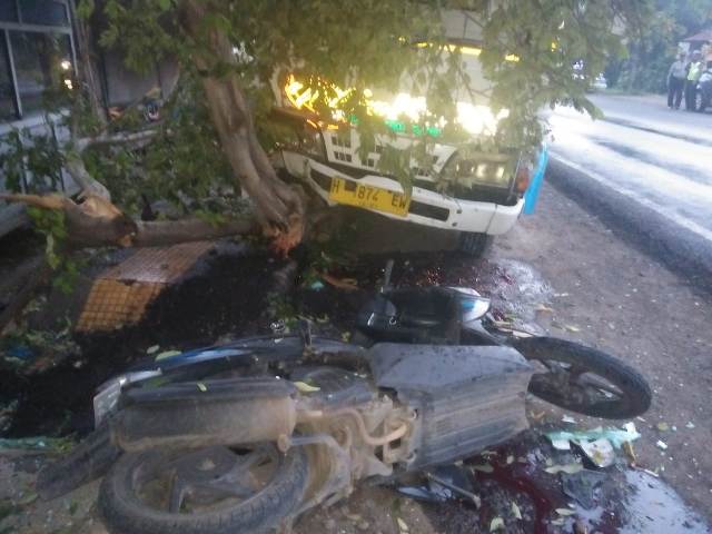 Saat itu, tiba-tiba truk bernomer polisi H 1874 EW yang dikemudikan Heru Setiawan (35) asal Pakis Aji, Jepara datang dari arah barat Gilimanuk menuju arah timur Denpasar, dengan kecepatan tinggi, hujan gerimis truk tidak bisa dikendalikan langsung keluar bahu jalan menabrak pohon perindang dan belakang pengendara sepeda motor,”kata Iptu Shinta, Minggu (1/3/2020).