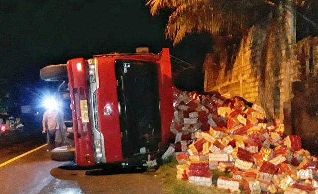 “Truknya terguling ke tepi jalan karena menghindari tabrakan dengan kendaraan dari arah berlawanan. Tidak ada korban, hanya kerugian material,” kata Kasat Lantas Polres Jembrana Iptu Shinta Ayu Pramesti, Rabu (24/6/2020).