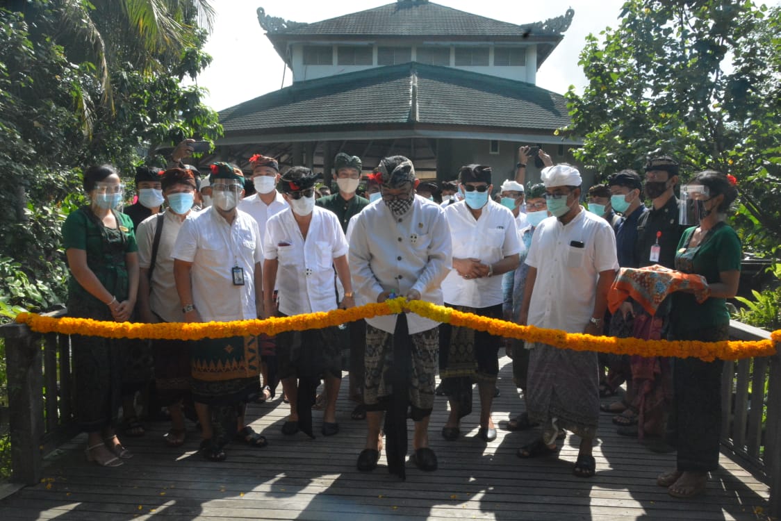 GIANYAR, MEDIAPELANGI.com – Wakil Gubernur Bali Tjok. Oka Artha Ardhana Sukawati menyambut baik Re-Opening kawasan suci wenara wana monkey forest setelah hampir delapan (8) bulan di tutup untuk umum akibat pandemi Covid-19 yang mewabah di tengah masyarakat. Meskipun kasus aktif pasien saat ini sudah mengalami penurunan (per hari rabu kemarin tercatat 662 atau 5,53%), namun Wagub Cok Ace meminta agar sejumlah upaya mulai dari penerapan protokol kesehatan tetap dilakukan saat kunjungan wisata ke tempat ini. Hal ini disampaikannya saat membuka secara resmi kawasan suci wenara wana monkey forest, Ubud, Kabupaten Gianyar, Kamis (5/11/2020).