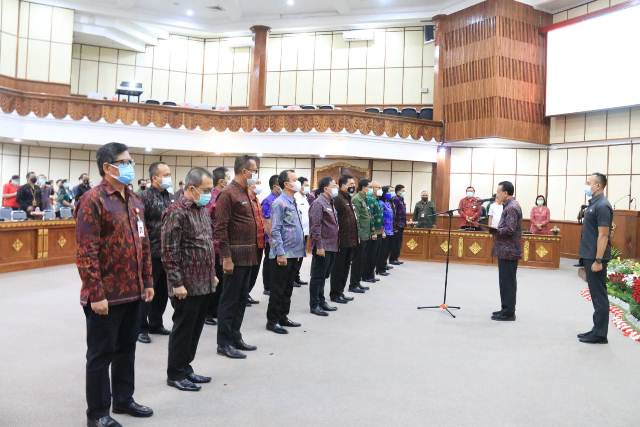 Dalam acara pengukuhan tersebut, nampak pula Kepala Perwakilan Bank Indonesia Provinsi Bali Trisno Nugroho, Sekda dan perwakilan se-kabupaten/kota, pimpinan lembaga keuangan serta OPD terkait.(rls)