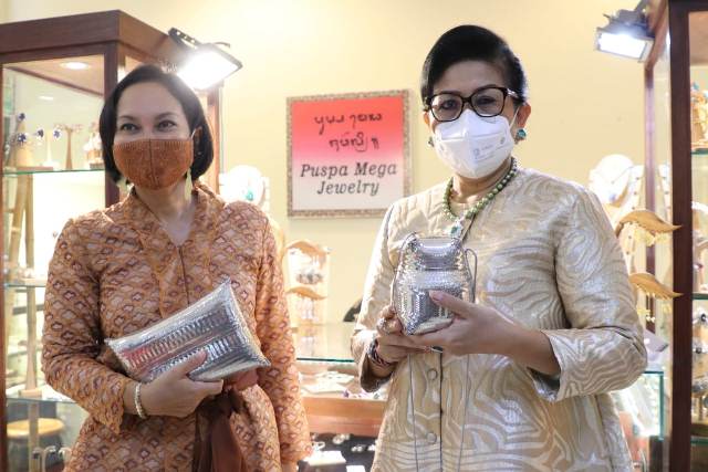 “Produk-produk kerajinan unggulan tersebut kita pamerkan dan kita jual, baik secara offline maupun online. Salah satu bentuk dukungan nyata kita kepada UMKM, antara lain dengan membeli produk kerajinan asli dari para perajin. Mari kita dukung perajin untuk bangkit dan terus berkreasi,” ujarnya, mengajak.