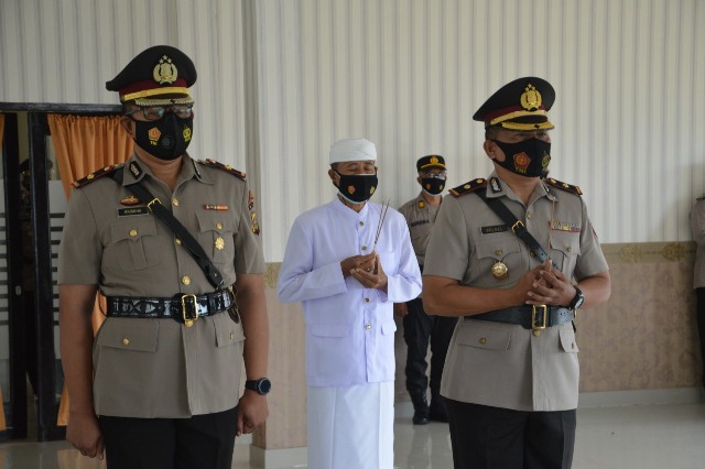 Hadir pada kesempatan tersebut para Kabag, para Kasat, para Perwira, anggota Polres Tabanan dengan tetap dengan protokol kesehatan.
