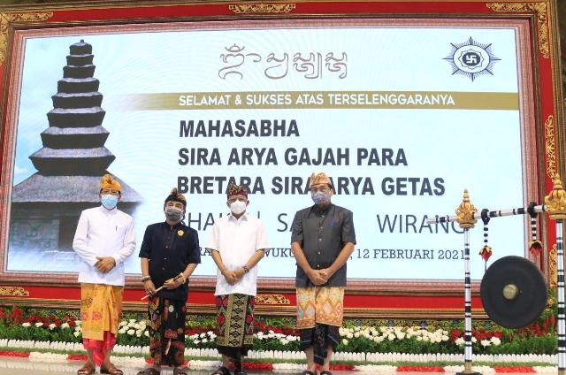 “Mahasabha ini sangat penting dilaksanakan untuk memperkuat jati diri kita sebagai warga Bali, sekaligus momentum untuk menyatukan kekuatan membangun Bali, mengingat Bali merupakan Pulau yang kecil. Namun alam Bali dianugerahi kekayaan yang luar biasa dengan alamnya yang indah, dengan manusianya yang unggul, dan budayanya yang luhur, untuk itu apa yang sudah menjadi warisan leluhur kita harus dijaga dan dilindungi,” ujar Gubernur Bali asal Desa Sembiran Buleleng ini saat membuka secara resmi Mahasabha Sira Arya Gajah Para Bretara Sira Arya Getas pada, Jumat, Sukra Wage Landep (12/2/2021).