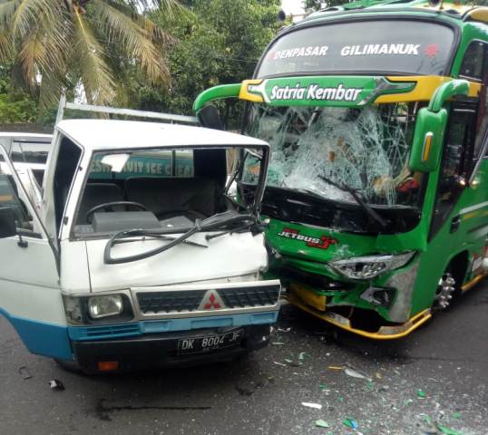 Saat bersamaan dari arah berlawanan melaju kendaraan bus mini Darma Yoga bernomor polisi DK 7017 JW yang dikemudikan I Ketut Suarda (62) warga asal Banjar Tengah, Desa Baler Bale Agung , Kecamatan Negara, Kabupaten Jembrana. “Tabrakan pun tak bisa dihindarkan,”ujar Kasubag Humas.