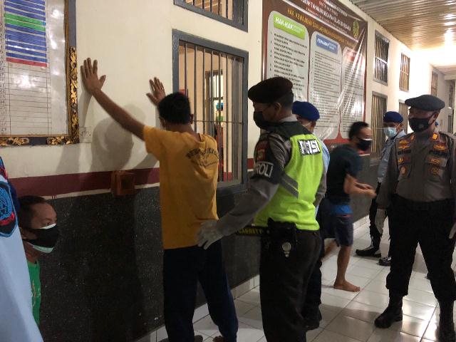 JEMBRANA, MEDIAPELANGI.com – Petugas gabungan dari Rutan Kelas II B Negara TNI/Polri dan Kesbagpolinmas Kabupaten Jembrana Bali, Selasa (6/4/2021) malam melakukan sidak di tiga blok ruang tahanan.