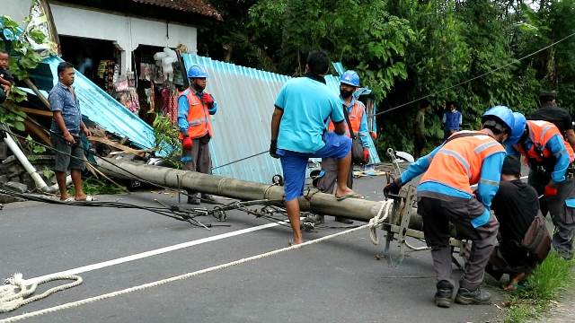Pohon tumbang menimpa kabel listrik dan menutup akses jalan di kawasan terhambat.