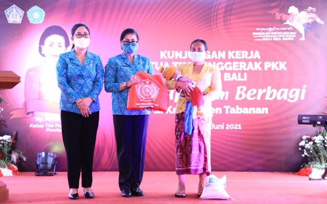 Sementara itu, Ketua TP PKK Kabupaten Tabanan Ny. Rai Wahyuni Sanjaya menyampaikan terima kasih atas perhatian yang ditunjukkan Ketua TP PKK Provinsi Bali Ny. Putri Suastini Koster. Menurutnya, kehadiran Ny. Putri Koster untuk menyapa dan memberikan bantuan sosial sangat dirasakan manfaatnya oleh masyarakat Tabanan di tengah situasi pandemi.