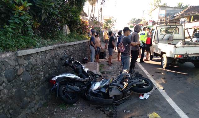 Alhasil, tabrakan dengan Yamaha Vixion nopol DK 2718 VY pun tak bisa dihindarkan. Karena jarak terlalu dekat sehingga kendaraan Vixion yang di kendarai I Wayan Karmayasa (23) warga Banjar Dinas Gulinres, Desa Bunutin, Kecamatan Abang, Karangasem tidak bisa dikendalikan. “Akhirnya kedua sepeda motor tersebut saling bertabrakan,” katanya.