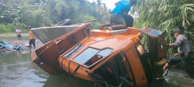 “Saat sebelum masuk ke dalam sungai, truk sempat menghantam besi jembatan namun karena saking kuatnya hantaman mobil, langsung terjun ke sungai dan sopir langsung meninggal di dalam mobil akibat tergencet bodi truk,”katanya.