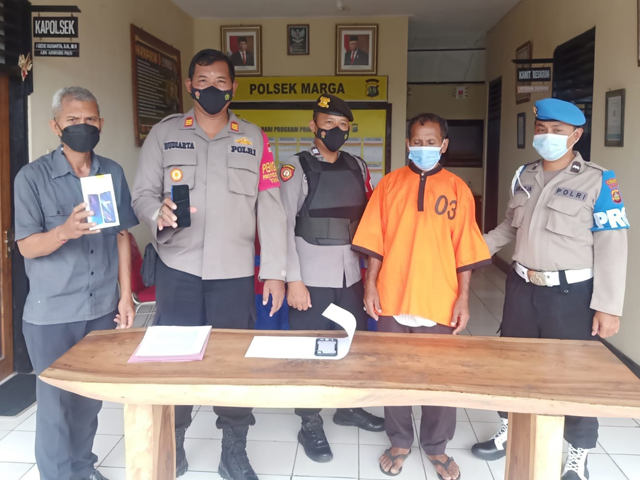 TABANAN, MEDIAPELANGI.com – Karena menemukan HP jatuh di jalan dan tak mengembalikan kepada pemiliknya, I Putu Sada alias Gurun Dedik (54), ditangkap Polsek Marga. Petani asal Banjar Dinas Payangan Kaja, Desa Payangan, Kecamatan Marga, Kabupaten Tabanan, Bali, itu dijadikan tersangka dalam kasus pencurian HP milik I Made Adi Dharma Putra (17), warga Banjar Dinas Geluntung Kelod, Desa Geluntung, Kecamatan Marga.