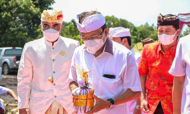 KLUNGKUNG, MEDIAPELANGI.com – Gubernur Bali, Wayan Koster secara resmi memulai pekerjaan pematangan lahan kawasan Pusat Kebudayaan Bali (PKB) di Kabupaten Klungkung ditandai dengan upacara Ngeruwak, Nyapuh Awu lan Mulang Dasar yang dipuput oleh Ida Shri Bagawan Putra Nawa Nata Wangsa Pemayun, pada Rabu (Buda Pon, Medangkungan) 12 Januari 2022.