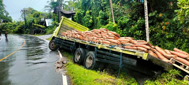Tidak ada korban jiwa akibat kejadian tersebut, hanya saja kendaraan mengalami kerusakan ringan. Namun kendaraan masuk got dan mengalami kerusakan serta diupayakan pemindahan muatan dan penarikan,” katanya.(mp)