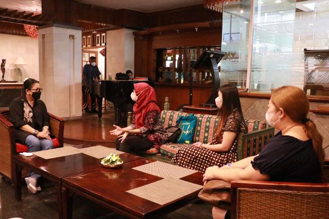 DENPASAR, MEDIAPELANGI.com – Ketua Dekranasda Provinsi Bali Ny.Putri Koster didampingi Kepala Dinas Perindustrian dan Perdagangan ( Disperindag) Provinsi Bali, I Wayan Jarta menerima audiensi dari Director Miss Global dari PT Mahakarya Duta Pesona Indonesia Dr.Kishanty Hardaningtyas MBiomed AAM, di Rajapala Snack Bar, Inna Grand Bali Beach ,Sanur, Minggu (11/4/2022)