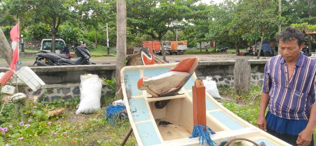 TABANAN, MEDIAPELANGI.com – Cuaca buruk dan gelombang tinggi membawa dampak buruk bagi nelayan di pesisir. Salah satunya nelayan di Pantai Yeh Gangga, Desa Sudimara, Tabanan Bali. Gelombang tersebut menyebabkan jukung nelayan rusak diterjang gelombang tinggi. Akibat jukung jenis fiber rusak, sehingga nelayan ini otomatis tidak bisa melaut.